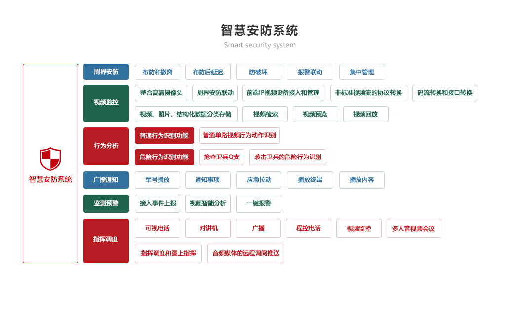 部隊管理系統基于對營區內人、車、dy、崗哨等建設要求,結合軍隊自身特點及應用現狀,實現網絡化管理,提高人、車等管理的效率。可以提高響應能力,構建人、車、q、d、密的全方位綜合管理的部隊系統,保障整體系統高效、穩定、安全運行,提升部隊全面信息化建設層次